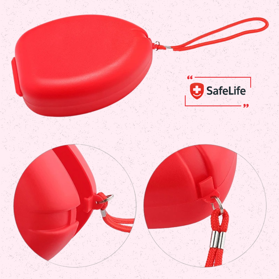 La mascherina è custodita in un contenitore rigido rosso ad alta visibilità, con laccetto incluso per poterla portare sempre con sé: al collo, nello zaino, in auto o nel kit di pronto soccorso. Leggera, compatta e pronta all’uso in qualsiasi situazione.